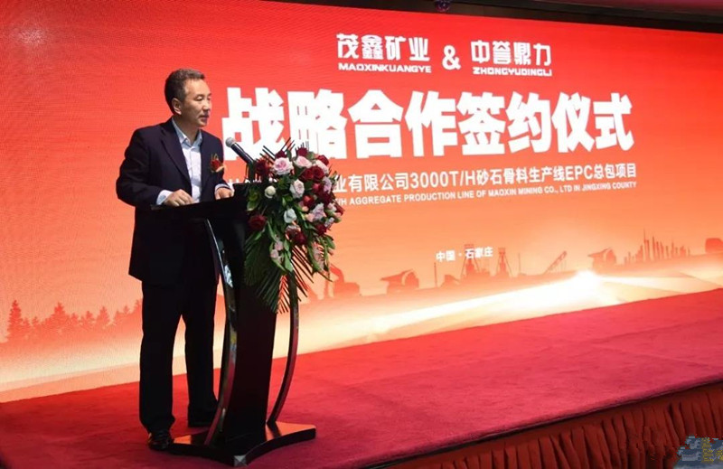 河南中譽(yù)鼎力智能裝備有限公司董事長(zhǎng)張治民在致辭中表示,今天這個(gè)儀式,標(biāo)志著兩家企業(yè)的戰(zhàn)略合作正式啟動(dòng)。中譽(yù)鼎力非常有信心,一定會(huì)把茂鑫礦業(yè)時(shí)產(chǎn)3000噸生產(chǎn)線建成當(dāng)?shù)丨h(huán)保生產(chǎn)線標(biāo)桿。今天簽約儀式完成以后,明天項(xiàng)目各部門就會(huì)進(jìn)入工地開(kāi)始前期各項(xiàng)工作。中譽(yù)鼎力作為項(xiàng)目的EPC總承包商,會(huì)在最短的時(shí)間內(nèi),把優(yōu)質(zhì)、環(huán)保、智能的項(xiàng)目呈現(xiàn)在大家面前。