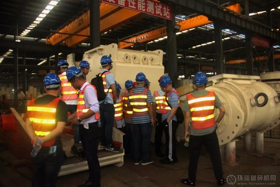 2019年5月19日下午,陰雨綿綿,參加第四屆高效先進破碎篩分與磨礦分級技術交流會的代表依舊熱情滿滿,蒞臨南昌礦山機械有限公司參觀指導,大家充分交流,互相學習,共商如何提高行業(yè)裝備水平及產(chǎn)品質量。公司副總經(jīng)理楊正海與劉敏先生、銷售公司副總經(jīng)理孫繼東先生、銷售大區(qū)經(jīng)理胡斌庚及胡晟先生分批接待參觀嘉賓,親自陪同參觀工廠并進行講解。