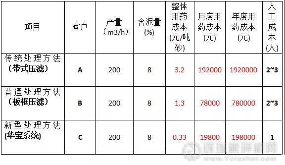 與傳統(tǒng)的加藥沉淀方式相比,此設備可在一定條件下降低加藥成本,每噸砂3元直降到0.3元,按每小時200噸計算,每天可省近10000元。