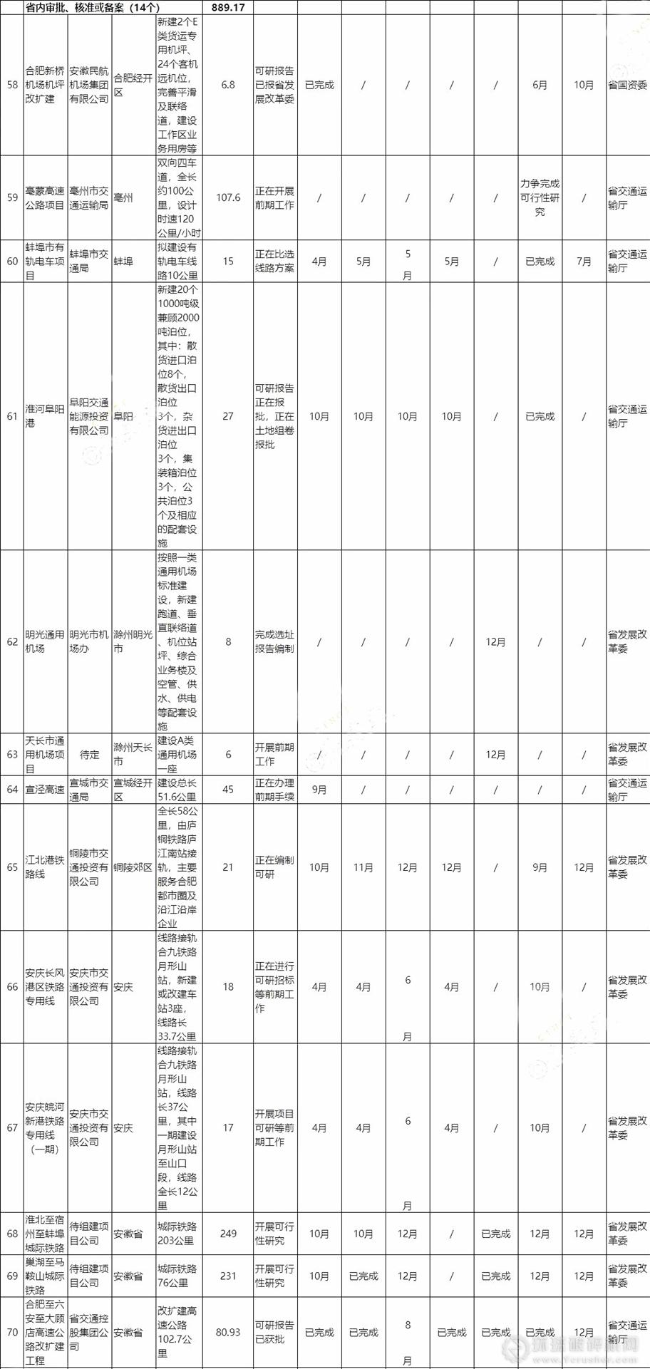 近日,安徽省人民政府辦公廳印發(fā)2019年省重大前期工作項(xiàng)目推進(jìn)計(jì)劃,并通知各市人民政府,省政府有關(guān)部門認(rèn)真組織實(shí)施。據(jù)該計(jì)劃,合計(jì)項(xiàng)目103個(gè),總投資5125.79億元。其中國家審批、核準(zhǔn)或備案19個(gè),省內(nèi)審批、核準(zhǔn)或備案84個(gè)。
