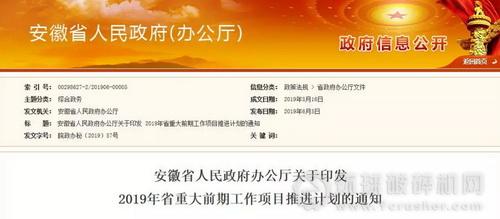 安徽省人民政府辦公廳關(guān)于印發(fā)2019年省重大前期工作項(xiàng)目推進(jìn)計(jì)劃的通知
