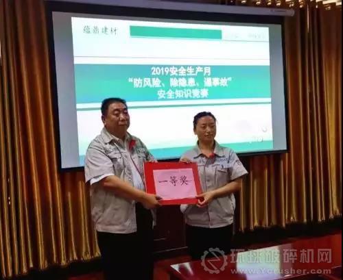6月20日上午,邢臺縣蘊鼎建材有限公司舉辦2019年安全生產月“防風險、除隱患、遏事故”安全知識競賽,該公司領導程永國、柴志坤、高慶國、夏瑞昌、魏素海出席。骨料事業(yè)部二隊取得本次競賽的第一名,骨料事業(yè)部一隊取得第三名。