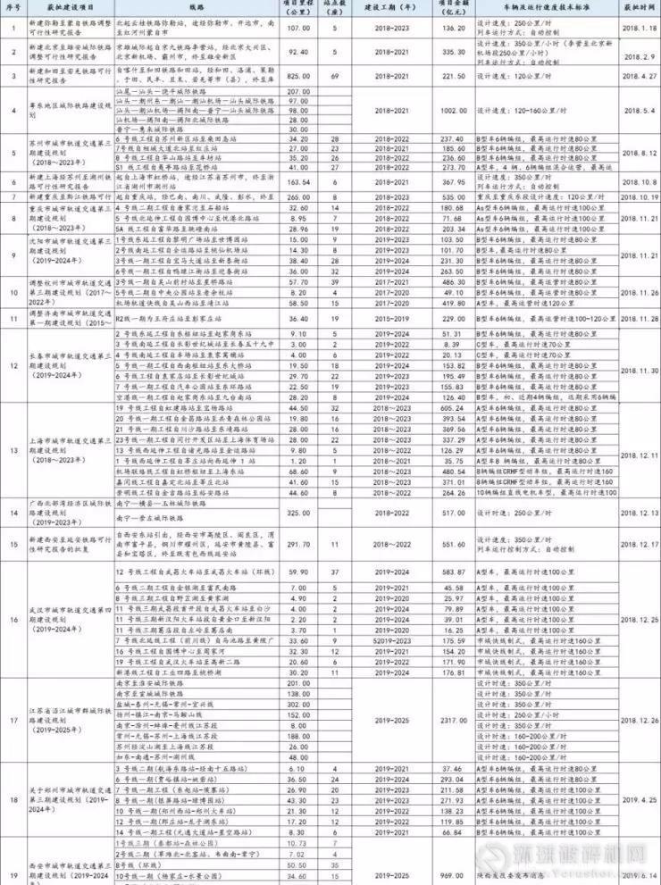 小編整理出了國(guó)家發(fā)改委正式批復(fù)軌交項(xiàng)目清單(2018.1.1-2019.6.20),并對(duì)獲批項(xiàng)目的具體的線路、項(xiàng)目里程、站點(diǎn)數(shù)量、建設(shè)工期、項(xiàng)目投資金額以及車輛及運(yùn)行速度技術(shù)標(biāo)準(zhǔn)也進(jìn)行了全部統(tǒng)計(jì),信息量大,內(nèi)容重要,建議收藏!