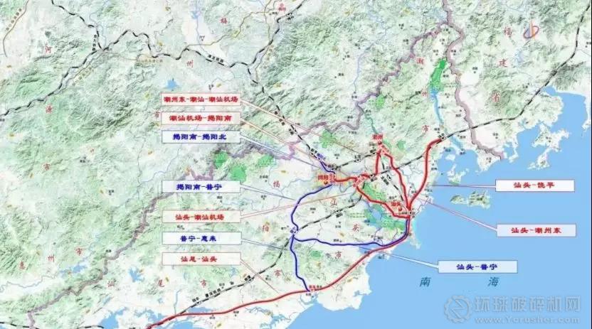 近期規(guī)劃建設(shè)“一線一環(huán)一射線”,即汕尾-汕頭-饒平、汕頭-潮州東-潮汕-潮汕機(jī)場(chǎng)-汕頭、潮汕機(jī)場(chǎng)-揭陽南城際鐵路,總里程320公里,總投資約691.9億元。未來形成以汕頭、汕尾、潮州、揭陽為主要節(jié)點(diǎn)、覆蓋粵東地區(qū)主要城鎮(zhèn)的城際鐵路網(wǎng)絡(luò),實(shí)現(xiàn)汕潮揭地區(qū)中心城市“半小時(shí)通勤圈”和粵東地區(qū)“一小時(shí)交通圈”,為粵東地區(qū)提供公交化的快捷城際旅客運(yùn)輸服務(wù)。遠(yuǎn)期規(guī)劃形成“一線兩環(huán)兩射線”為骨架的城際鐵路網(wǎng)絡(luò),總里程460公里。其中,“一線”為汕尾—汕頭—饒平城際鐵路,“兩環(huán)”包括汕頭—潮州東—潮汕—潮汕機(jī)場(chǎng)—汕頭、汕頭—潮汕機(jī)場(chǎng)—揭陽南—普寧—汕頭城際鐵路,“兩射線”包括潮汕機(jī)場(chǎng)—揭陽南—揭陽北、普寧—惠來城際鐵路,規(guī)劃項(xiàng)目總投資約1002億元。
