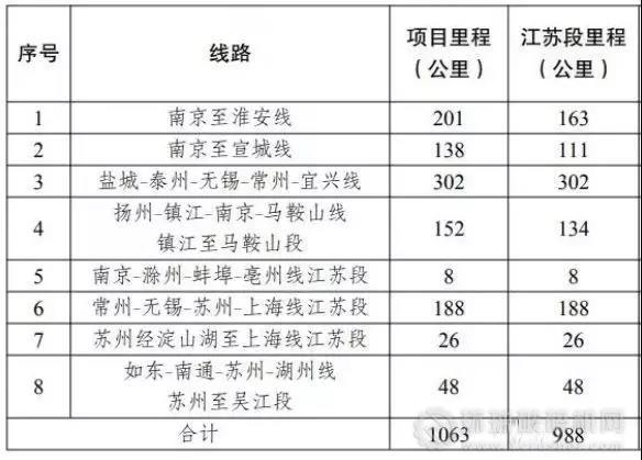 江蘇省沿江城市群城際鐵路建設(shè)規(guī)劃近期建設(shè)項(xiàng)目表
