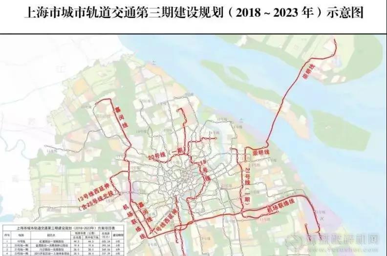 上海市城市軌道交通第三期建設(shè)規(guī)劃包含19號(hào)線、20號(hào)線一期、21號(hào)線一期、23號(hào)線一期、13號(hào)線西延伸線、1號(hào)線西延伸線6條地鐵線及機(jī)場(chǎng)聯(lián)絡(luò)線、嘉閔線、崇明線3條市域鐵路,總長(zhǎng)度286.1公里。項(xiàng)目建成后,形成27條線路,1154公里的軌道交通網(wǎng)絡(luò)(含市域鐵路342公里)。初步估算項(xiàng)目總投資約 2983.48 億元。