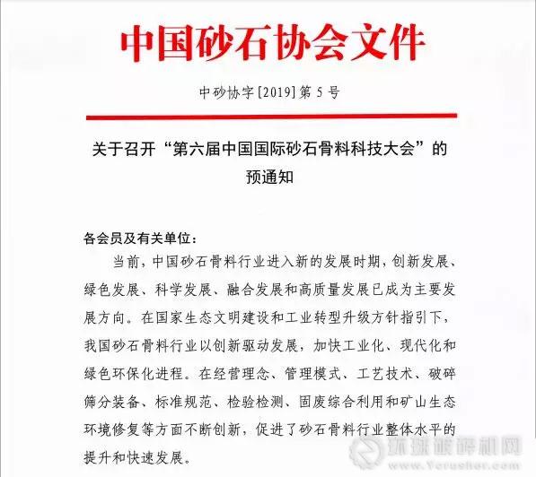 2019年7月20日-22日,由中國(guó)砂石協(xié)會(huì)主辦的“第六屆中國(guó)國(guó)際砂石骨料科技大會(huì)”即將在遼寧沈陽(yáng)隆重召開(kāi),棗莊鑫金山智能機(jī)械股份有限公司作為行業(yè)標(biāo)桿將協(xié)辦此次會(huì)議。