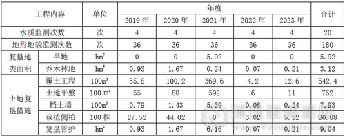 近期五年該項目靜態(tài)總投資155.679萬元,其中:地質(zhì)環(huán)境保護(hù)安排1.879萬元,土地復(fù)墾安排153.8萬元;動態(tài)總投資169.129萬元,其中地質(zhì)環(huán)境保護(hù)安排2.079萬元,土地復(fù)墾安排167.05萬元。