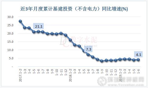 2019年上半年,全國基礎(chǔ)設(shè)施投資(不含電力)同比增長4.1%,增速較1-5月提高0.1個(gè)百分點(diǎn),低于去年同期3.2個(gè)百分點(diǎn)。其中,水利管理業(yè)投資增長1.1%, 1-5月為下降1.8%;道路運(yùn)輸業(yè)投資增長8.1%,增速較1-5月提高1.9個(gè)百分點(diǎn);鐵路運(yùn)輸業(yè)投資增長14.1%,增速較1-5月回落1個(gè)百分點(diǎn)。
