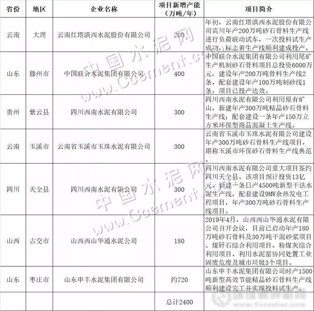 綜上來(lái)看,若上述水泥企業(yè)的砂石骨料生產(chǎn)線建設(shè)計(jì)劃在2019年全面推進(jìn),預(yù)計(jì)將有近10億噸砂石骨料沖擊市場(chǎng)。