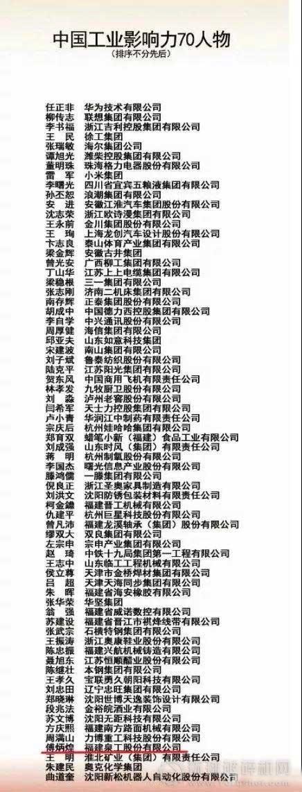 砂石協(xié)會(huì)副會(huì)長單位——福建泉工股份有限公司董事長傅炳煌榮獲了新中國成立70周年-“中國工業(yè)影響力70人物”榮譽(yù)稱號(hào)。據(jù)悉,本次榮譽(yù)榜單上,華為、聯(lián)想、小米、格力等掌舵人均在列。