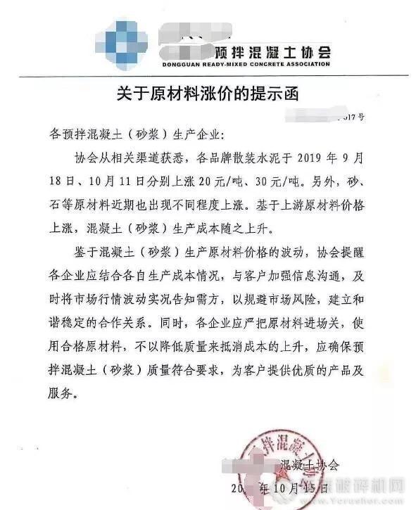 混凝土市場(chǎng)方面,據(jù)市場(chǎng)反饋,廣東地區(qū)原材料水泥價(jià)格持續(xù)上漲,同時(shí)砂、石的價(jià)格長(zhǎng)期處于高價(jià)水平,而且供應(yīng)緊張,致使混凝土成本增加,加之近期廣州地區(qū)混凝土市場(chǎng)需求尚可。為提升盈利,多家混凝土企業(yè)發(fā)布漲價(jià)通知,漲幅在30元/m3左右。