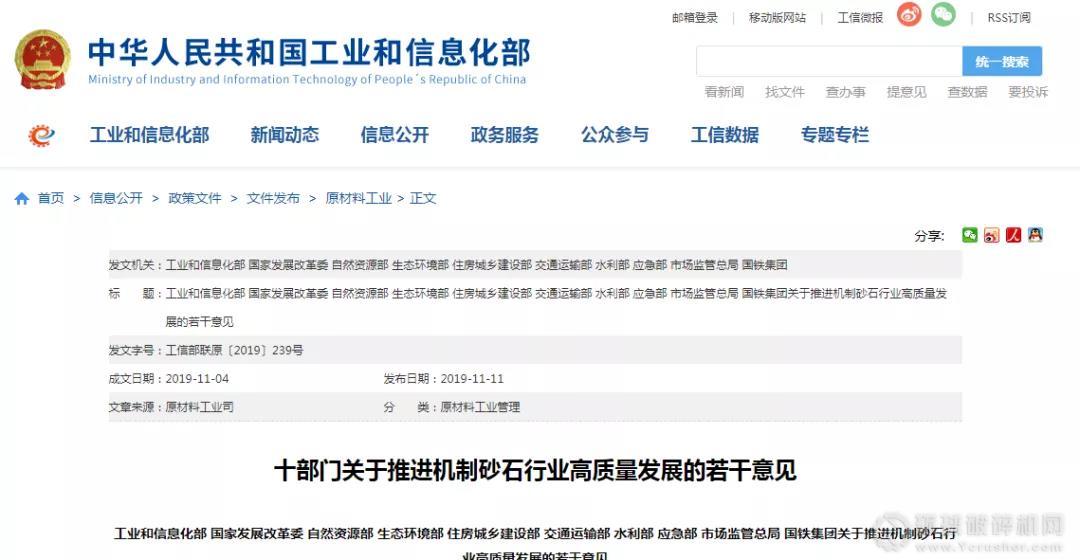 11月7日,河南省水利廳、省住房和城鄉(xiāng)建設(shè)廳、省自然資源廳、省工業(yè)和信息化廳、省發(fā)展改革委、省生態(tài)環(huán)境廳、省交通運(yùn)輸廳、省市場(chǎng)監(jiān)督管理局多部門(mén)聯(lián)合印發(fā)了《關(guān)于推進(jìn)機(jī)制砂砂石行業(yè)高質(zhì)量發(fā)展》,旨在大力推廣利用機(jī)制砂,促進(jìn)河南省機(jī)制砂產(chǎn)業(yè)健康發(fā)展。