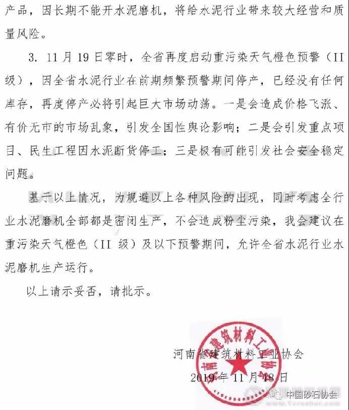 日前,河南省建筑材料工業(yè)協(xié)會上書河南省人民政府,建議在重污染天氣橙色(II 級)及以下預(yù)警期間,允許全省水泥行業(yè)水泥磨機生產(chǎn)運行。全文如下: