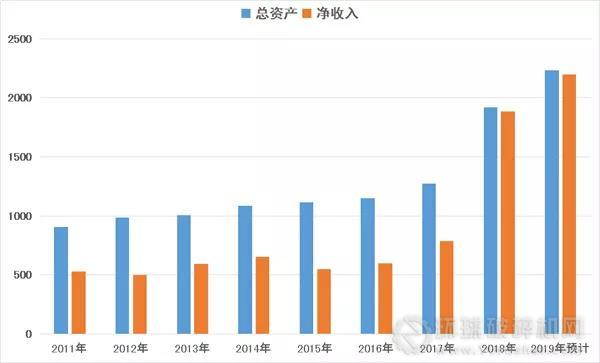 集團(tuán)總資產(chǎn)、凈收入增長(zhǎng)趨勢(shì)圖