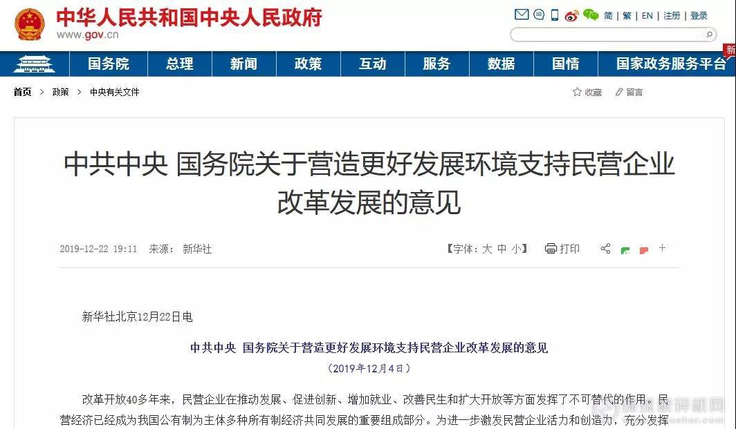 改革開放40多年來,民營企業在推動發展、促進創新、增加就業、改善民生和擴大開放等方面發揮了不可替代的作用。民營經濟已經成為我國公有制為主體多種所有制經濟共同發展的重要組成部分。為進一步激發民營企業活力和創造力,充分發揮民營經濟在推進供給側結構性改革、推動高質量發展、建設現代化經濟體系中的重要作用,現就營造更好發展環境支持民營企業改革發展提出如下意見。