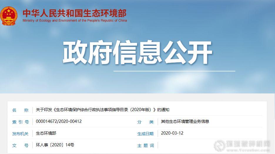 近日,生態(tài)環(huán)境部發(fā)布了關(guān)于印發(fā)《生態(tài)環(huán)境保護綜合行政執(zhí)法事項指導(dǎo)目錄(2020年版)》(以下簡稱“《指導(dǎo)目錄》”)的通知,稱根據(jù)深化黨和國家機構(gòu)改革有關(guān)安排部署,為貫徹落實《國務(wù)院辦公廳關(guān)于生態(tài)環(huán)境保護綜合行政執(zhí)法有關(guān)事項的通知》(國辦函〔2020〕18號)要求,扎實推進生態(tài)環(huán)境保護綜合行政執(zhí)法改革,現(xiàn)印發(fā)《生態(tài)環(huán)境保護綜合行政執(zhí)法事項指導(dǎo)目錄(2020年版)》及說明。