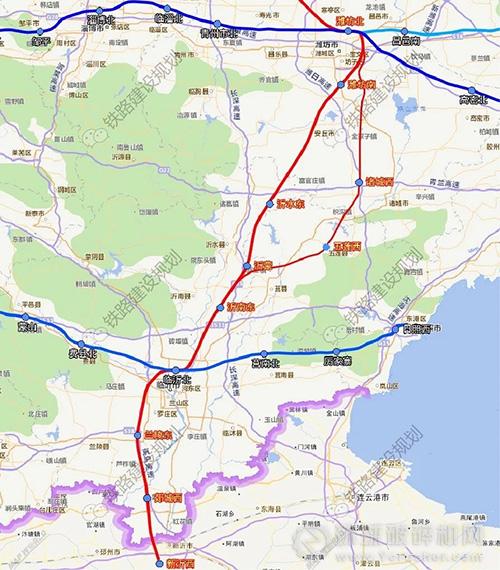 全線(xiàn)設(shè)站:濰坊北、安丘、楊莊、沂水東,沂南東、臨沂北、蘭陵?yáng)|、郯城西、新沂西等9個(gè)車(chē)站。