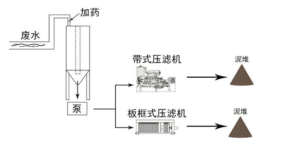 二、國內(nèi)普通廢水處理: 加藥快速沉淀+帶式壓濾機/板框壓濾機