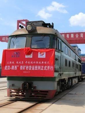 武漢首次開行至陜西鐵礦砂貨運(yùn)班列。