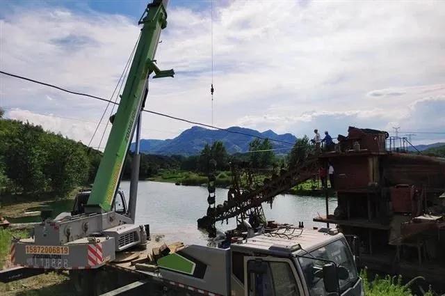 此次發(fā)現(xiàn)的“三無(wú)”采砂船為清淤施工采砂船。根據(jù)《湖北省河道采砂管理?xiàng)l例》的有關(guān)規(guī)定,“三無(wú)”采砂船舶應(yīng)依法取締,并按規(guī)定拆除。同時(shí)目前正值主汛期,嚴(yán)禁非法采砂。因此,咸安區(qū)依法對(duì)非法采砂船進(jìn)行拆除,目前船只正被切割,采砂機(jī)具、動(dòng)力設(shè)施及船體鋼板等零部件正陸續(xù)上吊至岸邊并被運(yùn)走。此次被同時(shí)吊裝上岸的還有3艘自制“三無(wú)”小型運(yùn)砂船。