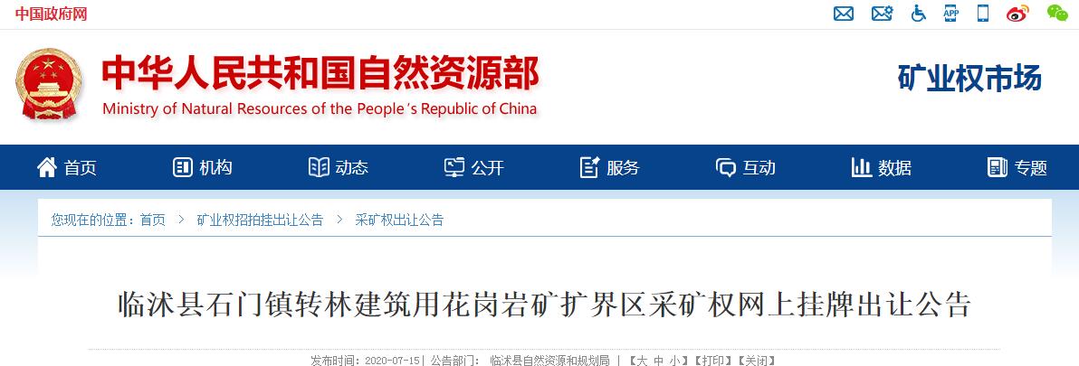 臨沭縣石門鎮(zhèn)轉(zhuǎn)林建筑用花崗巖礦擴(kuò)界區(qū)采礦權(quán)出讓公告