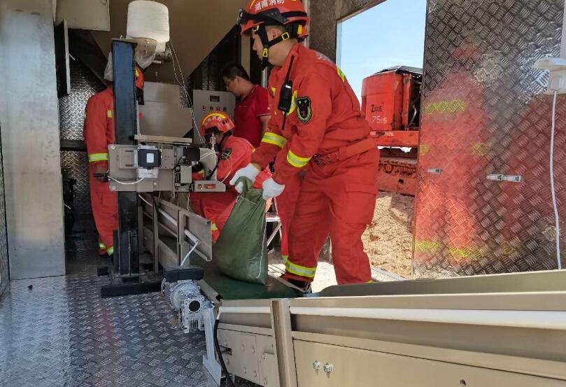 7月23日上午,岳陽市應急局聯(lián)合岳陽消防支隊在岳陽縣中洲大堤進行了一場特殊的演練,全國首批、我省第一臺砂石自動裝機模塊車現(xiàn)身,助力防汛搶險。