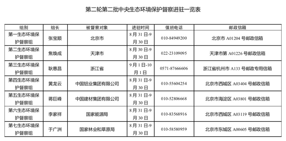 根據(jù)安排,第二輪第二批中央生態(tài)環(huán)保督察進(jìn)駐時(shí)間約為1個(gè)月。進(jìn)駐期間,各督察組分別設(shè)立專門值班電話和郵政信箱,受理被督察對象生態(tài)環(huán)境保護(hù)方面的來信來電舉報(bào),受理舉報(bào)電話時(shí)間為每天8:00-20:00。