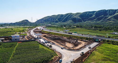 南水北調(diào)雄安調(diào)蓄庫建材通道項(xiàng)目位于榮烏高速公路徐水至淶源段保定市徐水區(qū)義聯(lián)莊鄉(xiāng)北側(cè),是依托榮烏高速增設(shè)的單向半菱形互通及連接線,互通區(qū)匝道采用單向單車道,連接線為三級(jí)公路,雙向兩車道,設(shè)計(jì)時(shí)速為40公里,由中建路橋集團(tuán)有限公司承建。