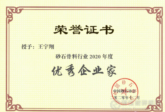 董事長王宇翔被評為全國砂石骨料行業(yè)“優(yōu)秀企業(yè)家”