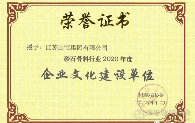 江蘇山寶集團被評為砂石骨料行業(yè)“企業(yè)文化建設單位”