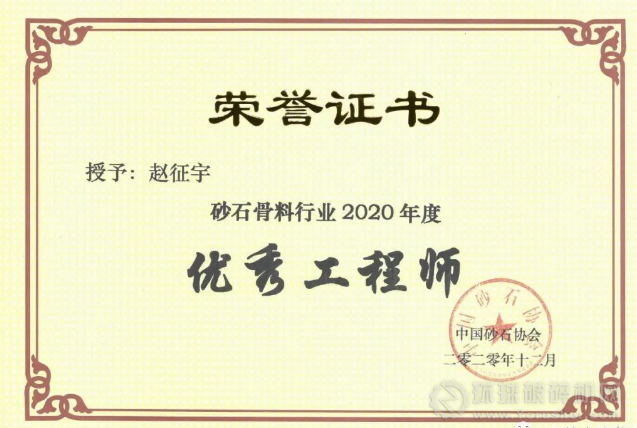 科技創(chuàng)新中心趙征宇被評為全國砂石骨料行業(yè)“優(yōu)秀工程師”
