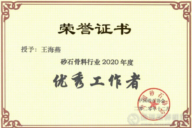 市場營銷中心王海燕被評為全國砂石骨料行業(yè)“優(yōu)秀工作者”
