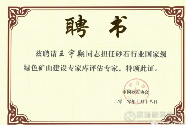 董事長王宇翔被聘為“綠色礦山專家?guī)鞂<?rdquo;