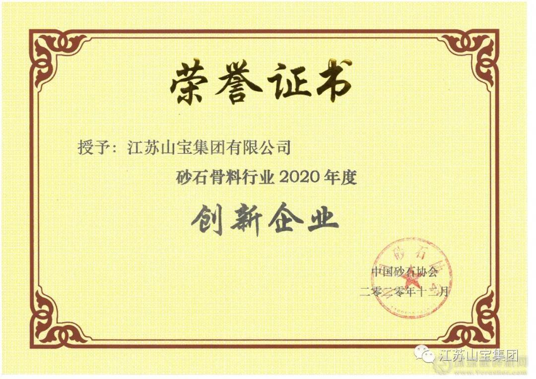 江蘇山寶集團被評為全國砂石骨料行業(yè)“創(chuàng)新企業(yè)”