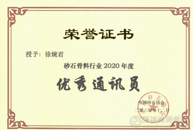 市場營銷中心徐婉君被評為全國砂石骨料行業(yè)“優(yōu)秀通訊員”