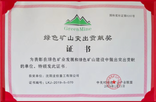 沈陽龍信重工有限公司,已獲得綠色礦山突出貢獻單位的嘉獎。積蓄新中國老工業(yè)基地的底蘊,吸收先進的設(shè)計理念,創(chuàng)造符合國際標準的新產(chǎn)品。