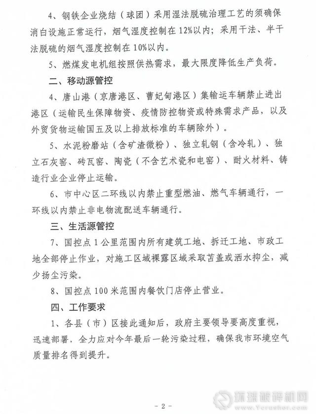 城區(qū)禁行“國Ⅲ”及以下標(biāo)準(zhǔn)機動車;施工工地、工業(yè)企業(yè)廠區(qū)和工業(yè)園區(qū)內(nèi)停止使用國二及以下非道路移動機械(清潔能源和緊急檢修作業(yè)機械除外);礦山(含煤礦)、洗煤廠、港口、物流(除民生保障類)等涉及大宗原料和產(chǎn)品運輸(日常進出量超過10輛次)的單位停止使用國四及以下重型載貨車輛(含燃?xì)廛囕v)進行運輸(特種車輛、危化品車輛除外)。