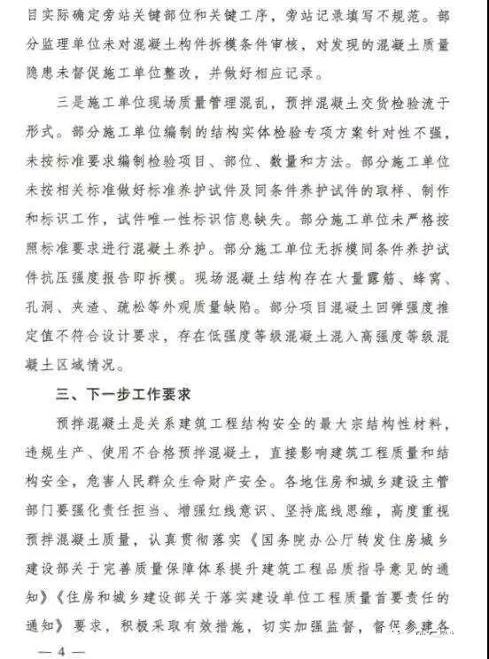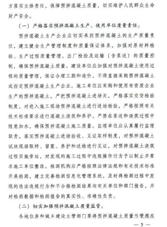 施工單位應(yīng)采購和使用有資質(zhì)企業(yè)生產(chǎn)的預(yù)拌混凝土,嚴(yán)把預(yù)拌混凝土進(jìn)場(chǎng)關(guān),嚴(yán)格落實(shí)交貨檢驗(yàn)制度,對(duì)進(jìn)入施工現(xiàn)場(chǎng)預(yù)拌混凝土進(jìn)行進(jìn)場(chǎng)檢驗(yàn),嚴(yán)格按照有關(guān)技術(shù)標(biāo)準(zhǔn)要求進(jìn)行混凝土澆筑和養(yǎng)護(hù),嚴(yán)禁在泵送和澆筑過程中隨意加水,確保預(yù)拌混凝土施工質(zhì)量。
