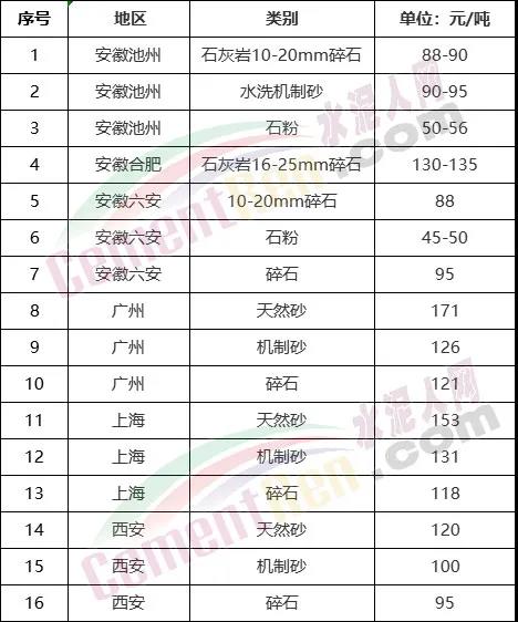安徽、福建多區(qū)域砂石價格小幅上調(diào)