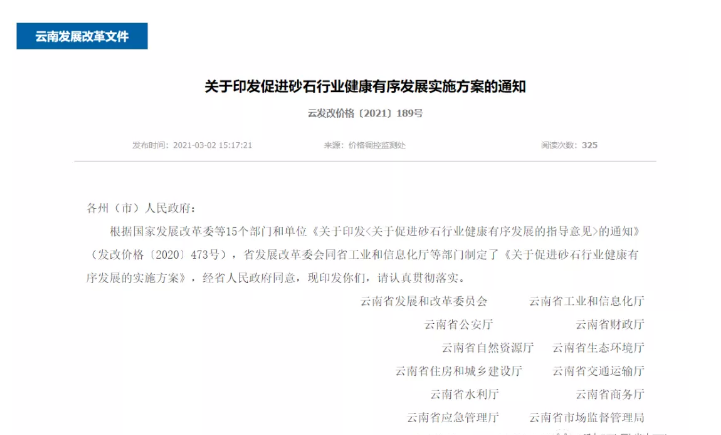 日前,為穩(wěn)定砂石市場供應(yīng)、保持價格總體平穩(wěn)、促進行業(yè)健康有序發(fā)展,云南省發(fā)展改革委會同省工業(yè)和信息化廳等部門制定了《關(guān)于促進砂石行業(yè)健康有序發(fā)展的實施方案》。
