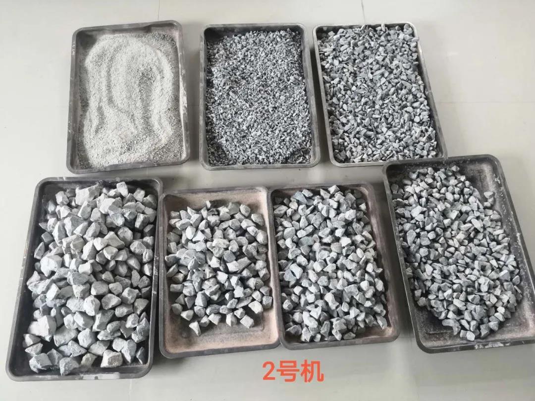 細碎破碎的花崗巖原料,進行包括進料高度、電流參數(shù)、排礦口大小等多維度測試結果得出,SCH8000成品率高達90%, 成品產量約為650t/h,成品粒形好,達到精品骨料品位要求。