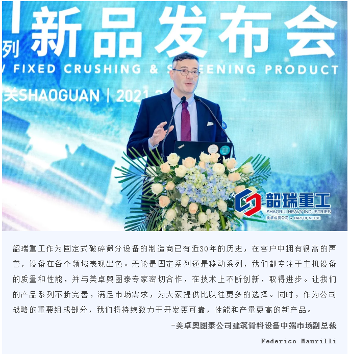 據(jù)了解,這次發(fā)布會的新品系列秉承了美卓奧圖泰兼顧環(huán)保及高效低耗的一貫要求,新增機型也將進一步完善現(xiàn)有產(chǎn)品系列,同時滿足不同應用場景和生產(chǎn)搭配,為更多砂石骨料客戶提供全面的解決方案。
