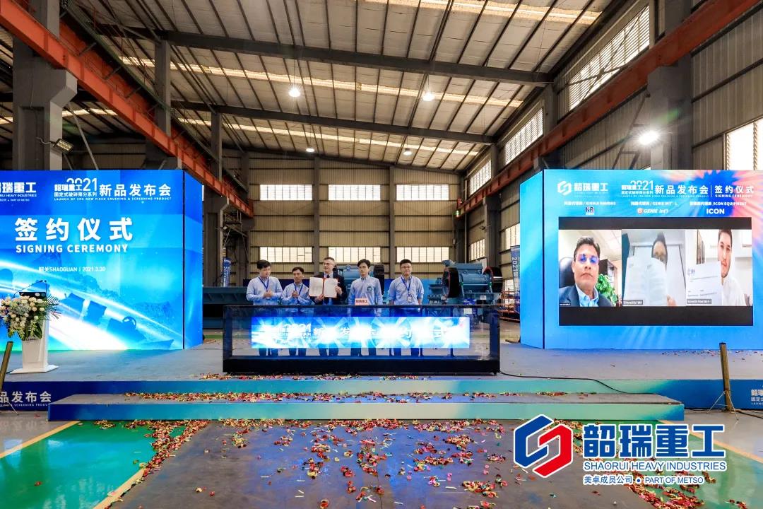 3月30日,“2021韶瑞重工固定式破碎篩分系列新品發(fā)布會”在韶關工廠隆重召開。新品韶瑞重工顎式破碎機SJC125/SJC140,反擊式破碎機SF1620P,多缸圓錐式破碎機SCH2000,單缸圓錐破碎機SG260S及振動篩2SS3675P精彩亮相!