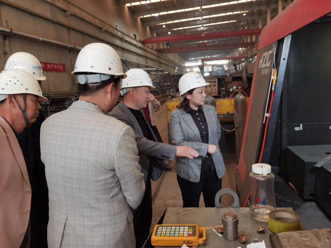 在河南萬仕衡通智能裝備有限公司,李俐一行參觀了企業(yè)生產(chǎn)線和設備中轉廣場。李俐邊看邊詳細了解企業(yè)發(fā)展情況,并就進一步深化合作交流、加快推動