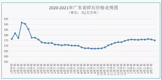 3月下旬全省碎石平均購進(jìn)價(jià)為每立方米175元,環(huán)比微降0.49%。其中,珠三角、粵西和粵北地區(qū)碎石分別為每立方米192元、136元和142元,環(huán)比分別下降0.41%、0.3%和1.03%;粵東地區(qū)碎石為每立方米199元,環(huán)比持平。3月下旬機(jī)制砂平均購進(jìn)價(jià)為每立方米158元,環(huán)比微降0.43%。