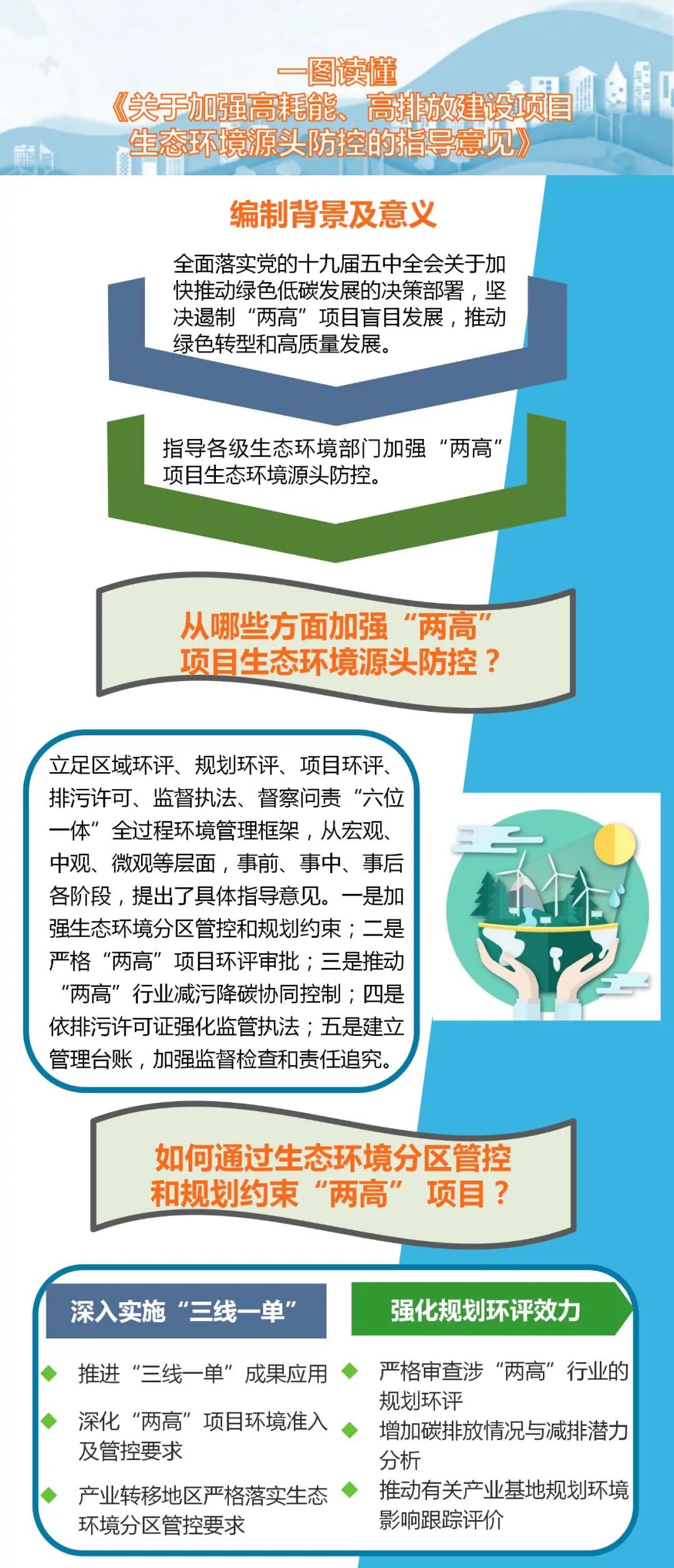 生態(tài)環(huán)境部近日公布《關(guān)于加強(qiáng)高耗能、高排放建設(shè)項(xiàng)目生態(tài)環(huán)境源頭防控的指導(dǎo)意見》(以下簡稱《指導(dǎo)意見》)。生態(tài)環(huán)境部環(huán)境影響評(píng)價(jià)與排放管理司有關(guān)負(fù)責(zé)人表示,《指導(dǎo)意見》立足區(qū)域環(huán)評(píng)、規(guī)劃環(huán)評(píng)、項(xiàng)目環(huán)評(píng)、排污許可、監(jiān)督執(zhí)法、督察問責(zé)“六位一體”全過程環(huán)境管理框架,明確環(huán)境管理要求,引導(dǎo)“兩高”項(xiàng)目低碳綠色轉(zhuǎn)型發(fā)展。