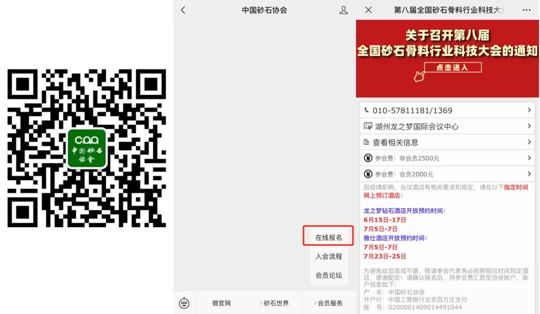 1.小程序:中國砂石協(xié)會微信小程序報名參會