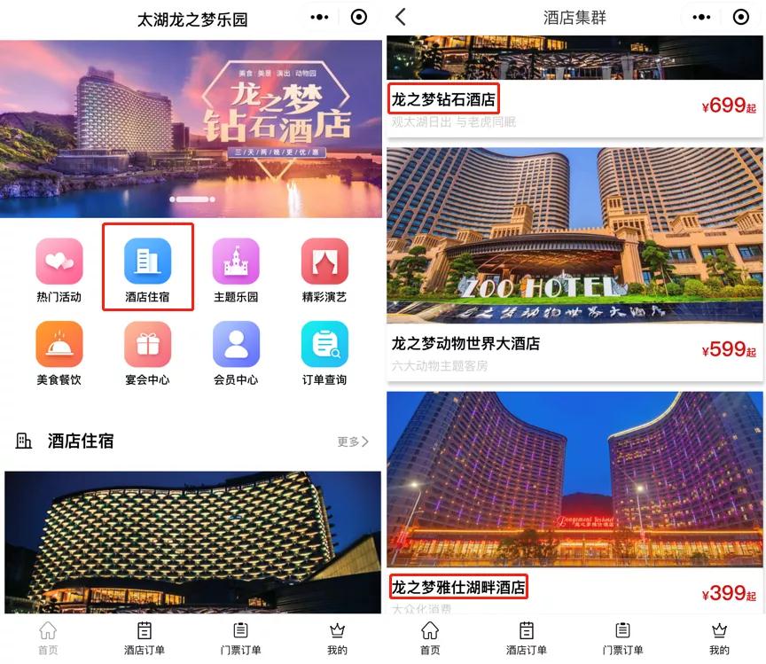 第二步:點擊酒店住宿預(yù)訂龍之夢鉆石酒店(會議酒店)、雅仕酒店(配套酒店)。