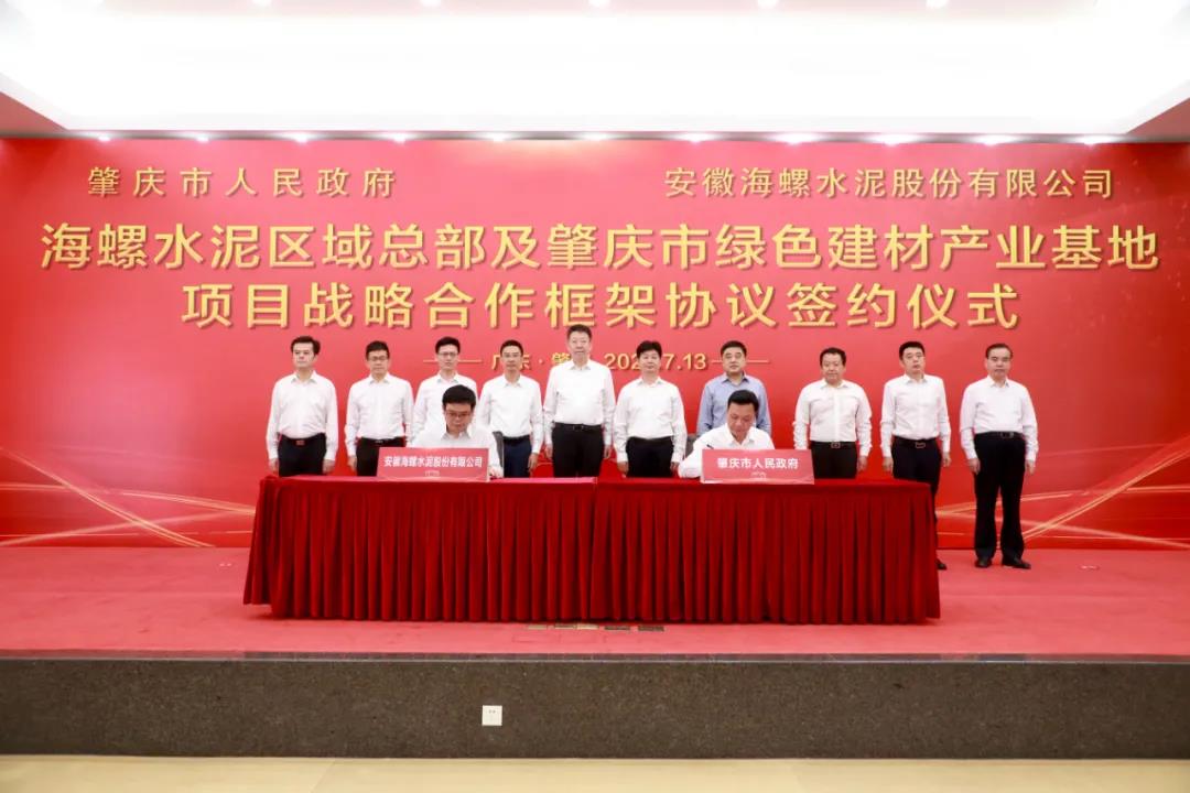7月13日,肇慶市人民政府與安徽海螺水泥股份有限公司簽訂海螺水泥區(qū)域總部及肇慶市綠色建材產(chǎn)業(yè)基地項(xiàng)目戰(zhàn)略合作框架協(xié)議,雙方將在綠色建材產(chǎn)業(yè)等領(lǐng)域開(kāi)展全面深化合作,共同打造國(guó)內(nèi)一流的新型建材領(lǐng)域科技創(chuàng)新和產(chǎn)業(yè)發(fā)展平臺(tái)。